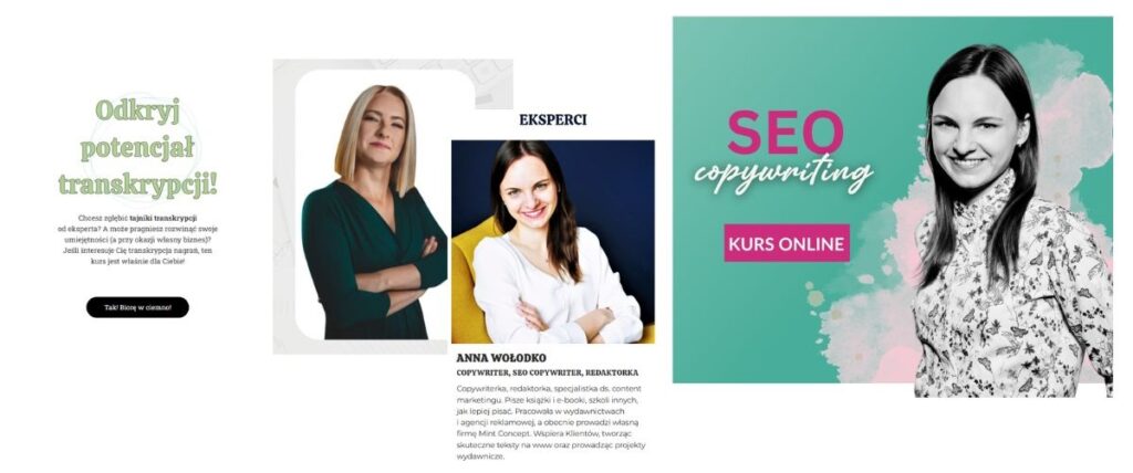 Na początku roku, dzięki współpracy z Eduj.pl, mój kurs online o SEO copywritingu od podstaw znalazł się na platformie zewnętrznej (na której można go kupić do teraz pod tym linkiem – warto obserwować aktualne promocje). Zaraz potem do swojego kursu online, w charakterze eksperta, zaprosiła mnie Marta Kafar ze Słowem Pisane. Z Martą znam się – i miałam okazję pracować przy różnych projektach – od samych początków prowadzenia firmy, dlatego bez wahania się zgodziłam. Mój moduł na temat copywritingu w transkrypcji nagrań oraz o SEO w pigułce, wzbogadził kurs online dla początkujących transkrybentów.